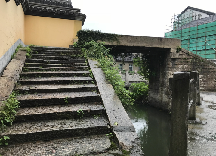 龙华桥坐落在龙华寺边。龙华寺是一座极其古老的寺庙,始建于南朝宋元嘉二十四年(447年)。龙华桥如今显得有些冷清,桥周围生长着绿色植物;而桥上也几乎没有行人经过。龙华桥旁还有一座菩提桥(这应该是一座现代修建的桥),与龙华寺的一个门相连。